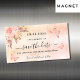 Uma Imã salve a data de cintura e moda para uma Quinceañera, festa de aniversário 15. Um fundo cor-de-rosa pincelado, rosa, gradiente dourado, decorado com florais cor-de-rosa pincelado, grama pampas e borboletas. Personalize e adicione uma data e nome/idade. O texto: Salvar a Data é gravado com um script de estilo com letra de tendência grande.