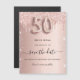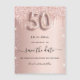 Uma cinta e moda Salve a placa Date para uma festa de aniversário 50th. fundo rosa de gradiente dourado decorado com ouro rosa e brilho prateado falso e poeira. Personalize e adicione uma data e um nome/texto. O texto: Salvar a Data é gravado com um script de estilo com letra de tendência grande com alternâncias. Número 50 com uma fonte no estilo do balão.