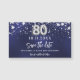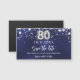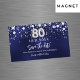 Uma Imã salve a data moderna e elegante para uma festa de aniversário 80. Um fundo azul marinho decorado com estrelas de falso prata. Personalize e adicione uma data e um nome. A cor azul é irregular. O texto: Salvar a Data é gravado com um script de estilo com letra de tendência grande.