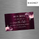 Um cartão magnético Save the Date para uma festa de aniversário 50th. Um fundo burgundy profundo decorado com florais burguentos e cor de rosa. Personalize e adicione uma data e nome/idade. O texto: Salvar a Data é gravado com um script de estilo com letra manual com alternâncias.