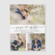 Escolha as melhores fotos de sua filmagem de noivado ou suas fotos favoritas de vocês dois para salvar a data perfeita. As palavras salvar a data são manuscritas para dar uma sensação pessoal ao ímã. Edite esta opção para salvar o ímã de casamento de data com suas informações e personalizá-lo para obter mais informações sobre opções de cores de fonte e fonte.
