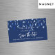 A Save the Date magnético card for a 40th (or any age) festa de aniversário. Um fundo azul marinho, decorado com confete. O texto: Salvar a Data é gravado com um script de estilo com letra de tendência grande.