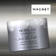 Um casamento de moda Salve o ímã de Datas. Um fundo de prata falsa. Decorado com flocos de neve Personalize e adicione uma data, um lugar e seus nomes. Salvar a data é escrito com um script de estilo moderno, escrito à mão, com alternâncias.
