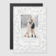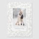Elegante, chic e design monocromático mínimo com modelo de foto de solteiro, padrão botânico de inverno esculpido prateado e campos de texto editáveis.