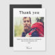 Fundo branco. Escrita escrita com letras grandes com baloiços e o texto: Obrigado. Personalize e adicione sua foto, obrigado nota e nome.