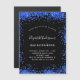 Uma Quinceañera, 15 convite de aniversário. Um fundo preto chic. Decorado com confete azul real. Personalize e adicione um nome e detalhes da parte. O nome é escrito com um script de estilo manuscrito.