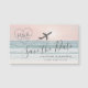 Casamento de destino de praia salve a data de um pequeno mini ímã (do tamanho de um cartão de visita) com um logotipo personalizado de um avião do coração sobre um pôr do sol rosa pincelado em uma praia de areia com ondas oceânicas e design moderno. Clique em "Personalizar mais" para edição avançada do design, como alteração da cor do texto, da fonte e do posicionamento, e da cor do avião. Entre em contato comigo para coordenar os itens que você está procurando, ou use a "transferência deste design" para criar seu próprio item do Zazzle.
