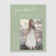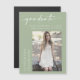 Sim! Ela finalmente se formou na escola, seja no segundo grau, na faculdade, na universidade, ou em um programa de formando, então agora é hora de informar a família e os amigos que ela fez isso! Comemore um momento de precioso de sua vida e envie esse cartão magnético de anúncio de graduação. Este ímã apresenta uma bela escrita caligráfica do texto do "formando" sobre um fundo verde empoeirado e a foto do formando. Basta personalizar e substituir o texto e a foto na caixa de personalização. Observe que a redação elegante do script de caligrafia de "formando" e outros elementos e trabalhos de arte gráficos não pode ser editada, excluída ou movida. Eles estão consertados.
