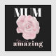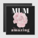 Diga como está. Uma grande floração de aquarela de solteiro domina o centro desta carta. Num fundo preto, a mensagem "Mãe, você é incrível" é colocada em grande tipografia moderna, em branco e rosa correspondente.