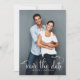 Moderno e caprichoso, guarde o cartão de data com caligrafia moderna com preto e branco riscado para trás. Outras cores estão disponíveis.