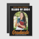 Este moderno ímã de anúncio de formando personalizado de mais velho laranja e preto apresenta o seu nome de segundo grau ou de faculdade para a classe de 2024. Personalize com seu nome sob o chic, o script manuscrito em negrito e o boné formando preto para um cartão magnético de graduação personalizado do excelente.