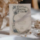 Elevem seu casamento com este sofisticado cartão de cardápio inspirado em Art Nouveau. A frente exibe uma ilustração requintada com detalhes florais e de videira complexos em tons elegantes de preto e marfim. O design do ornamentado enquadra o menu cuidadosamente organizado, com uma seleção de aperitivos elegíveis, cursos principais e sobremesas. Este cardápio combina a beleza do eterno com a elegância moderna, fazer-o como uma adição perfeita ao seu decoro de casamento. A sofisticada tipografia e a trabalho de arte refinada deixarão uma impressão duradoura nos seus hóspedes, acrescentando um toque de charme de vintagem ao seu dia especial.