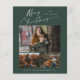 Cartão de Natal Fotográfico 3 do Script de Natal de Orçamento com tipografia manuscrita elegante e 3 fotos na frente. As costas têm uma foto de solteiro. Clique no botão editar para personalizar este design.