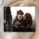 Esta elegante horizontal para salvar a placa de data apresenta uma borda agata preta, cortada com falso brilho dourado. Substitua facilmente a imagem de exemplo por sua própria foto da futura noiva e noiva. O texto personalizável combina um script de escrita manual dourado e uma fonte de impressão compactada; um filtro de gradiente preto ajuda a fazer o pop de texto. A parte traseira apresenta um design de agate preto e dourado correspondente.