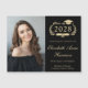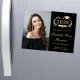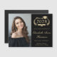 Cartão magnético de anúncio de graduação em preto da faculdade moderno, com ano de formando, ilustração da coroa de louros, boné superior, diploma, foto do formando e seu nome em um elegante roteiro de ouro leve. Adicione sua escola, major, honras ou planos futuros.