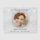 Um simples e elegante imã de fotos memoriais. Um fundo metálico prateado falsa, uma armação branca, brilhos falsos. Personalize e adicione uma foto e detalhes. Texto preto.
