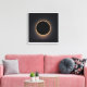 A imagem captura o momento inspirador de um eclipse solar total. Um disco preto, perfeitamente circular, de tinta, representando a lua, é silenciado contra a vasta extensão do céu noturno. Um brilho tenso e etéreo emana das bordas da lua, criando um efeito halo mesmerizante. Este espetáculo celeste é ainda reforçado pela presença de uma cordilheira distante, sua silhueta esticada contra a escuridão, acrescentando um sentido de escala e perspectiva à cena.