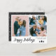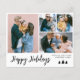 Cinzas modernas, simples, pretas e brancas, colagem de 4 fotos Feliz Natal Folheto de Papel Feriado de Pincel de Natal. Este cartão festivo, minimalista, com quatro (4) fotos da família apresenta uma bonito colagem fotográfica e diz que o texto de saudação "Feliz Feriados!" está escrito em um tipo de letra de escrita de pincel com letra manuscrita. Do lado de trás, fundo de neve. Bonito cartão de boas-vindas para sua família e amigos na temporada de festas de inverno.