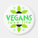 Bonito design floral verde neste ímã vegano com as palavras Vegans Love Life.