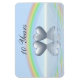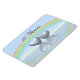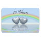 Magnet para o décimo aniversário com minha trabalho de arte de dois corações de estanho ou alumínio flutuando na água sob um arco-íris. O texto personalizável diz "10 anos".