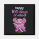 Design bonito com um axolotl vestindo uma mochila e segurando uma grande caneta com a citação "Feliz 100 dias de escola". Feliz 100º dia de escola ou jardim de infância.