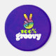 Um íman legal e funerário com um design de tipografia contendo um sinal de paz arco-íris com dedos erguidos em um V. Text diz que 100% de ranhura em uma fonte engraçada. Design de tema hippie psicodélico. Colocado sobre um fundo cor púrpura ácido-escuro.