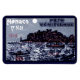 Um poster vintage de promoção do Festival Veneziano do Mônaco, realizado no dia 17 de maio de 1914 A design retratando uma variedade de navios ao largo da costa, cada um iluminado por lanternas. Toda a cena iluminada por uma lua de cheio.