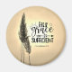 Um ímã inspirador mostra uma fotografia natural com o sol a brilhar em duas lâminas de grama com fundo ouro. Apresenta Bíblia Verso 2 Corintianos 12:9, "Sua Graça é Suficiente."