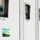 Um ímã de escritura inspiracional mostra uma ave-do-mar voando à luz de um pôr do sol ouro com um fundo azul, verde e preto. Apresenta Bíblia Verso 2 Corintianos 3:17, "Onde o Espírito do Senhor está, há Liberdade."