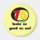 Se você ou alguém que você sabe estão girando 75 anos velhos, você amarão nossos 75 olhares tão bons em mim t-shirt do aniversário, botões, cartões, etiquetas, canecas, ímãs, e outros 75th roupa e presentes do aniversário com um preto, um vermelho, e um design de texto do amarelo.