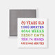 89 anos contando anos, dias, meses, horas e minutos. Um presente de aniversário para dar uma pausa para pensar! Foram tidos em conta anos saltos!