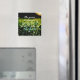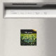 Uma bela foto de grama verde fresca com gotas de água e slogan motivacional "A grama é sempre mais verde onde você a rega".