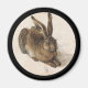 Belas artes do século XVI por Albrecht Durer. Coelho jovem com orelhas compridas e cores de coroa senta-se sobre um fundo rosa pálido.