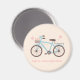 Uma citação que é aplicável à vida e às bicicletas. Ela diz "A vida é uma bela viagem" ilustrada com uma bicicleta azul e borboletas fluindo atraídas pelas flores. Paleta colorida de cor rosa, azul pastel, castanho e cinzas.