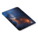 A região central da nuvem molecular escura Chamaeleon I, a 630 anos-luz daqui. Capturada pela câmera Near-Infrared (NIRCam) no telescópio espacial James Webb. A nuvem fria e sábia (azul, centro) é iluminada no infravermelho pelo brilho da jovem protoestrela Ced 110 IRS 4 (laranja, superior esquerda). A luz de numerosas estrelas de fundo, vistas como pontos laranja atrás da nuvem, pode ser usada para detectar gelos na nuvem, que absorvem a luz estelar que os atravessa.