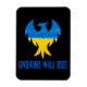 Um design de ímã inspirador que ecoa a resiliência das pessoas ucranianas mostra uma silhueta de pássaros da Fênix nas cores azul e amarela da bandeira da Ucrânia com o texto "A Ucrânia vai subir" em cartazes angustiadas.