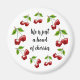 Brilhe seu dia com este ímã desenhado pela mão! "A vida é apenas uma tigela de cerejas", em um roteiro cercado por pares de cerejas desenhados à mão, brilhantemente coloridos.