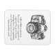 Um ímã preto e branco com uma foto de uma câmera com uma citação esclarecedora e motivadora sobre a vida e como devemos ajustar nossa perspectiva. "A vida é como uma câmera. Concentre-se no que é importante, capture os bons tempos, desenvolva-se a partir dos negativos, e se as coisas não acabarem - tome outra dose." Autor de citação é desconhecido. Design e citação é excelente para fotógrafos ou qualquer pessoa que precise de uma busca na minha vida.