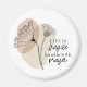 Um ímã de aspas inspiracional retrata um simples design de arte de linha floral com duas flores em formas de tons de terra. Ela apresenta uma mensagem encorajadora, "A vida é frágil com a oração."_