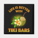 A Vida É Melhor Com Bares De Tiki. Aloha! Vista isso na próxima festa de luau havaiano, férias tropicais, ou no bar tiki ou no quarto tiki e aproveite uma bebida tropical. Excelente para um cruzeiro com ilhas tropicais, lua de mel, férias de verão ou férias de primavera. Presente perfeito para o verão para amantes do Havaí, bares tiki havaianos e cultura tiki. Aproveite um bom cocktail tropical ou bebida mista na praia. Design tem uma foto de um coco com palha e flores amarelas de hibisco.