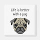 Cute Pug. O texto diz: "A vida é melhor com um cão"