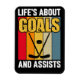 Tema de hóquei, ímã flexível com pinto de hóquei e paus com faixas coloridas e texto que Life's Sobre Objetivos e Ajuda!