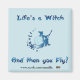A vida é uma bruxa, e depois voa! Uma design divertida com uma bruxa sobre sua vassoura seguindo uma espiral de folhas e morcegos, e uma estrela estudada escrevendo tudo em um rico azul que lembra o céu noturno. Perfeito para o Halloween ou a qualquer hora!