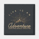 Um ímã com uma ilustração dourada em fundo de cinza preta. Projetado com uma ilustração de uma montanha com raios solares brilhando por trás. A tipografia diz: "A vida é uma descoberta de sonho de uma Aventura".