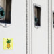 Um abacaxi perky é apresentado neste fundo de bolinhas amarela e branca.