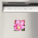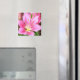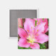 Um lírio rosa vibrante quase brilha quando uma abelha coleta o néctar.
