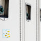 Íman Abelha no ímã quadrado da flor - Fundo azul