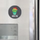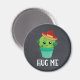 Abraça-me o ímã com uma bela ilustração de um cacto verde sentado num pote de flores. Grandes olhos kawaii e vestindo um sombrero vermelho. Fundo é uma imagem de quadro negro.