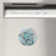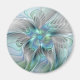 Uma borboleta de fantasia colorida e muito decorativa com cores pastel azuis-esverdeadas harmoniosas. Design para o seu ímã redondo moderno e muito mais.
