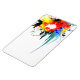 Abstrato Paint Splatters, pintura em forma de salto, laranjas, azuis, verdes - cores vistas em papagaios selvagens tropicais com um talo de abstrato